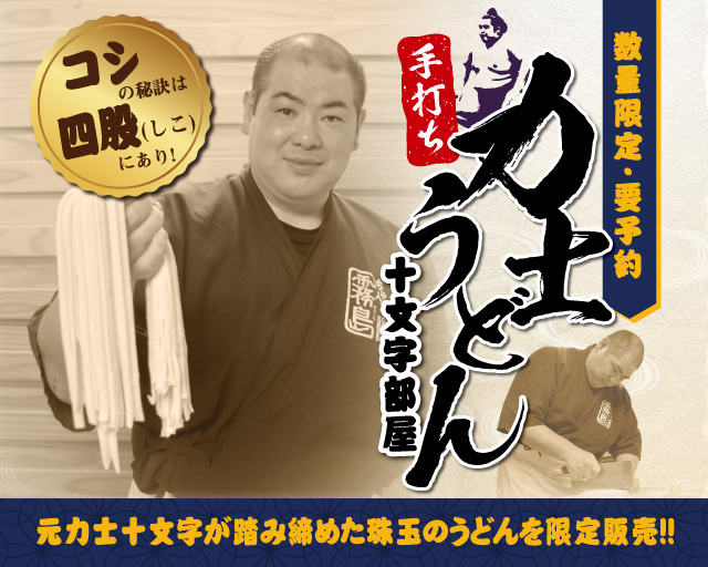 元幕内力士十文字が踏み締めたコシの強いこだわりうどん期間限定販売!!