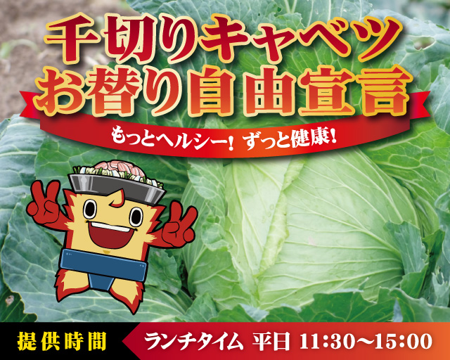 千切りキャベツお替り自由宣言!!ランチタイムにて継続決定!!