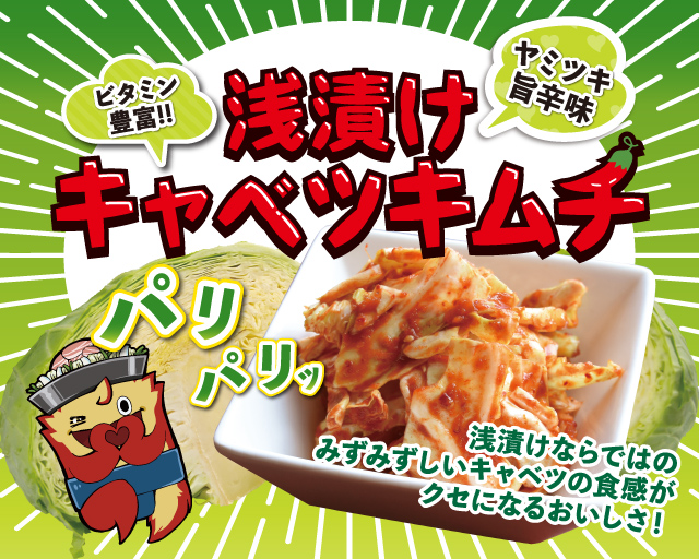 パリパリの食感に旨辛味がたまらない!!浅漬けキャベツキムチが好評販売中!!
