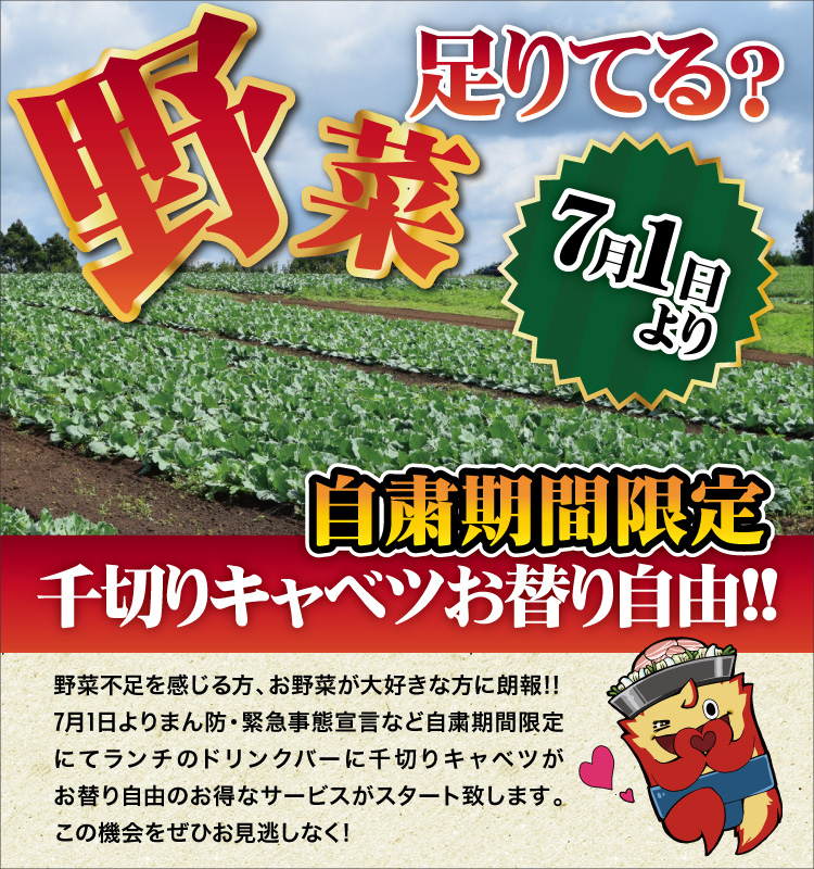 千切りキャベツがお替り自由!